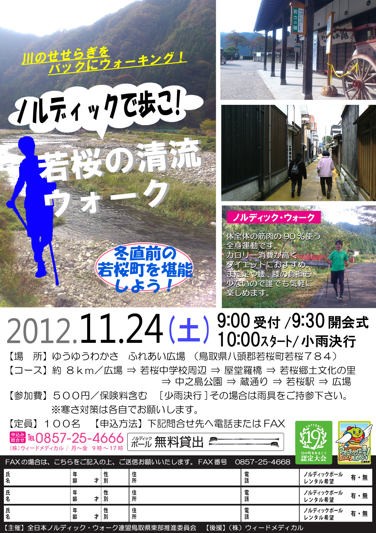 ・詳 細:全日本ノルディック・ウォーク連盟鳥取県東部推進委員会 TEL:0857-25-4666